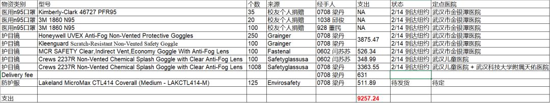 自1月24日发起募捐号召至2月2日,校友会共计收到捐款7812.82美元,扣除手续费剩余7761.74美元。由于美国境内医用防护物资限购(参考2月3日校友会微信公众号的更新),我们随即暂停募捐,转而购买限制较少的防护物资,包括护目镜(防雾,防溅射,无通风口)以及二线医护人员可以使用的防护服。同时,我们加入了中国科技大学校友基金会组织的科大北美校友捐助活动,依旧借用武汉大学纽约地区校友会的运输渠道支援武汉地区,除防护服待发货以外的物资已经寄送至纽约校友处待发往国内!为防止下单后出现货源不足而被供应商取消订单的情况,我们早前采取在各个渠道同时下单多批物资的策略。但也因此支出9257.24美元,超出了募捐数额。由此,校友会于2月19日重新开放募捐渠道,目标金额为1495.5美元,补足差额随即终止。截止2月20日下午3点,新一轮目标金额成功达成。为此,校友会将暂时关闭武汉医疗物资支援计划的募捐通道。如有继续收到针对本次计划的捐款,我们将会相应退还捐款。感谢各位校友的支持和努力!希望疫情能够早日结束!