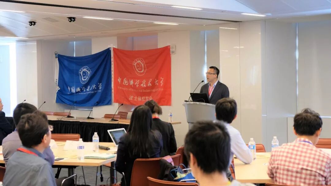 峰会随即正式开始,程临钊教授首先为生命科学与医药(Life Science & Pharmaceutics)板块做主旨演讲。程教授为808校友,他首先坦言自科大毕业后迟到了35年终于兑现了 “要回科大”的承诺。程教授的研究集中在血液干细胞领域,他的实验室通过诱导干细胞大量扩增实现治疗血液病人的目的,同时血液红细胞也可以作为药物载体。他回到科大生医部任职部长之后将继续从事干细胞研究并建立了血液和细胞研究所。程教授回忆了两年前自己离开工作了25年的霍普金斯、参与筹建新生医部和招聘部长的经历,并展望了自己在科大生医部继续致力基础科研和临床研究应用相结合,将生医部建设成为中国第一个临床研究医院的规划。令人感慨的是,程教授与波士顿校友会颇有渊源,还留有去年来参加活动获得的棒球帽,现场气氛一度十分欢乐融洽。
